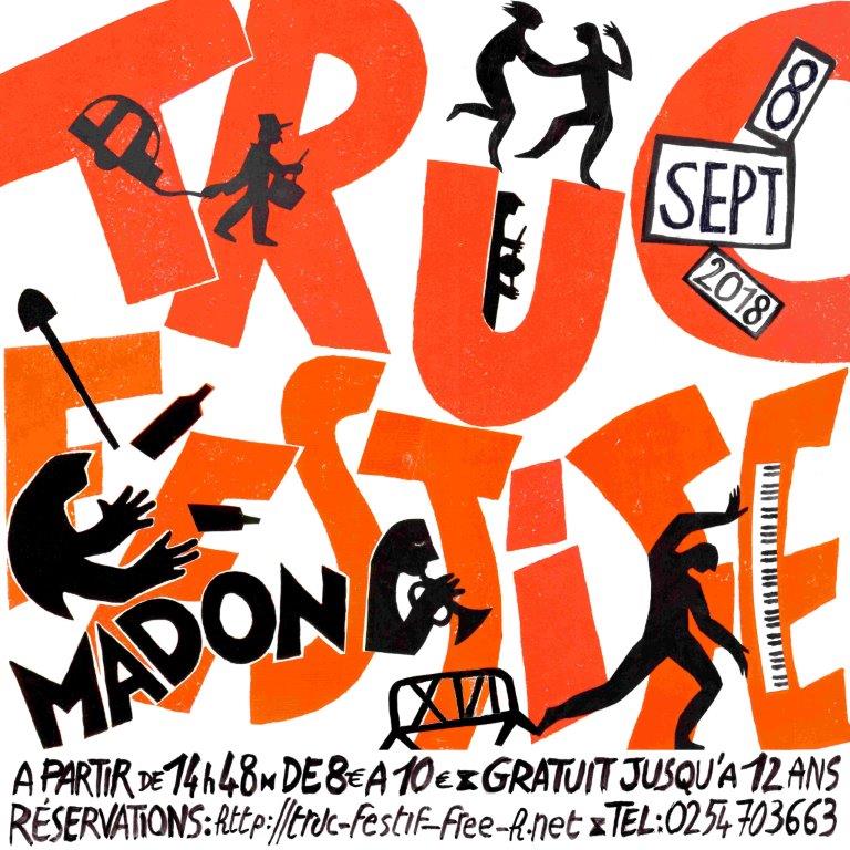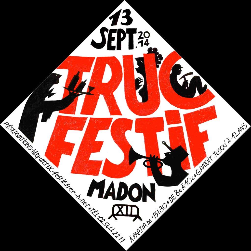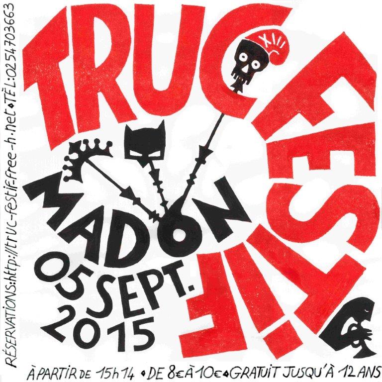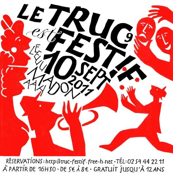 communication se faisait de bouches à oreilles. Depuis 2005, l'artiste Sébastien TOURET réalise nos affiches à partir de gravures sur bois. Il permet même aux petits et grands d'imprimer leur affiche pendant le Truc. |